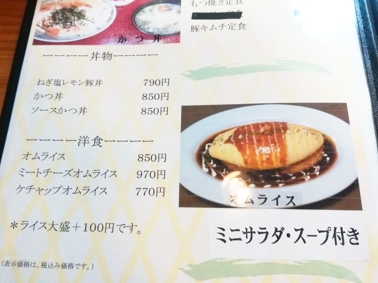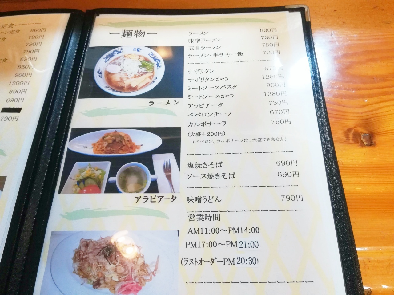 メニューも中華・洋食・和食・ラーメンと種類が豊富です。