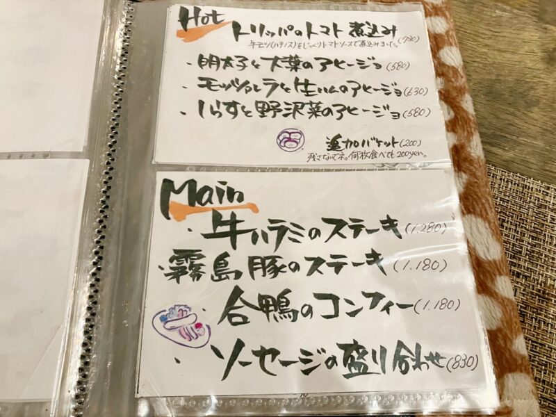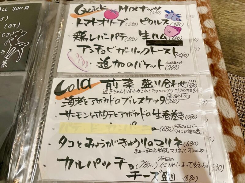 夜なので「おつまみになりそうなメニューがあるかな〜」と友人と話ながらメニューを開きます。