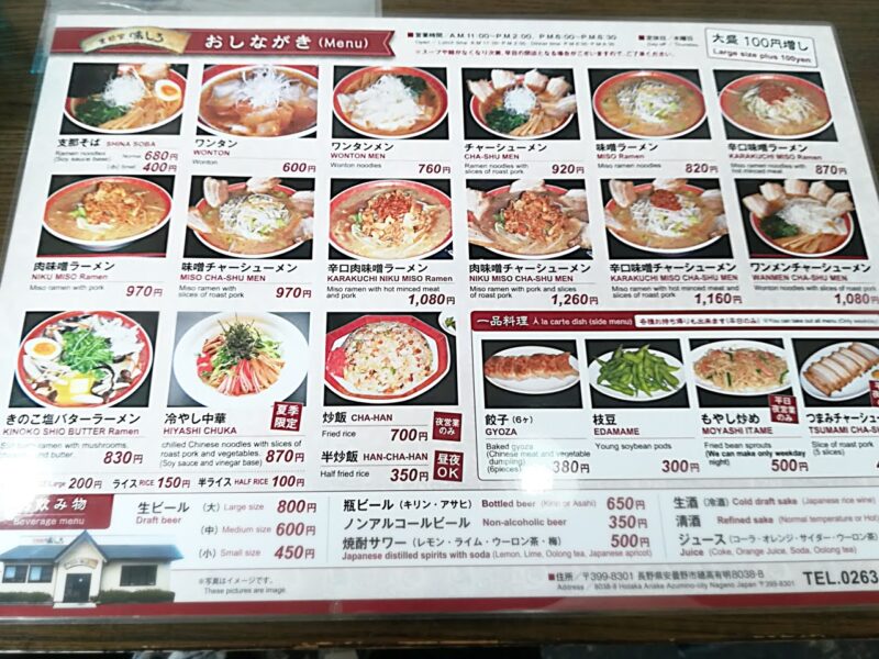 「支那家 味しろ」は、穂高の山麓線沿いにあります。