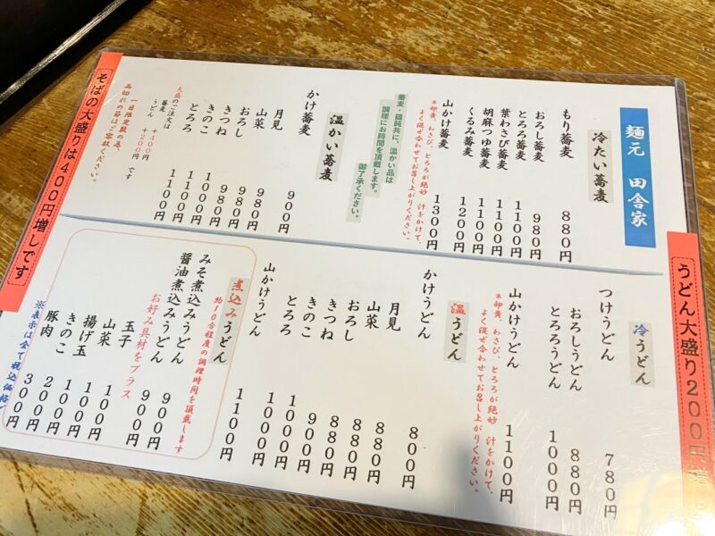 「麺元 田舎家」のメニュー