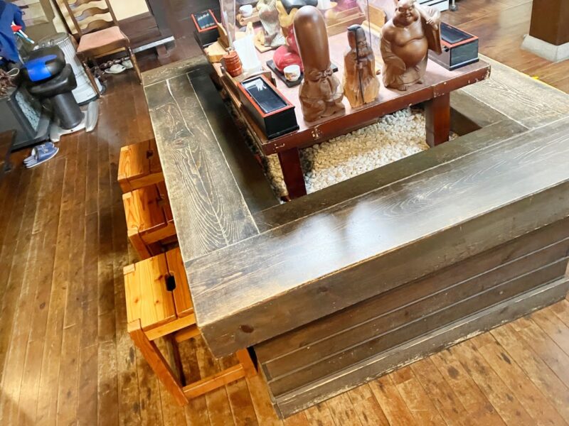 囲炉裏を工夫したカウンターテーブル。