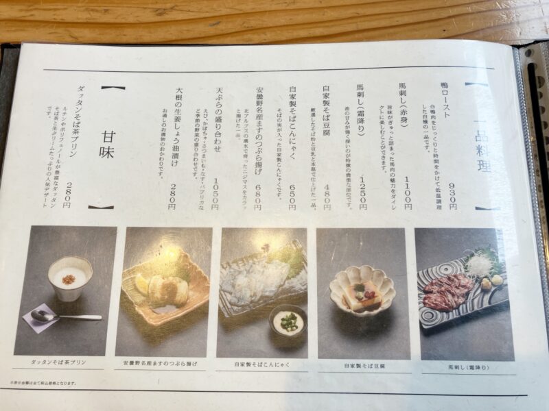 一品料理には、ますのつぶら揚げや馬刺しなどの地域の名産もラインナップ。自家製の大根の生姜しょうゆ漬けなども気になります。