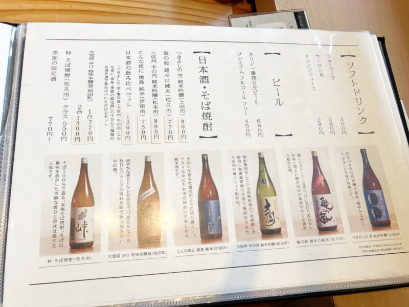 日本酒は、信州のお酒が並んでいます。飲み比べセットもあるので、車運転しない人はぜひ楽しんでみてください。