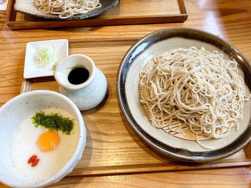 普通はとろろだけのお店が多いのですが、「信州城下そばと天ぷら やまとう」のつけとろそばは、卵の滋味深い味わいが加わり、青のりがアクセントになって箸が進みます。
