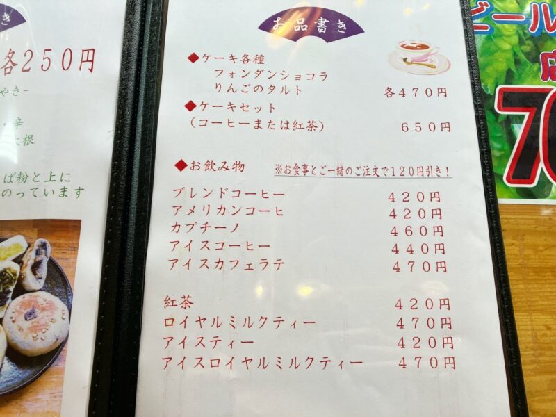 食事と一緒に注文すれば300円でコーヒーがいただけます。