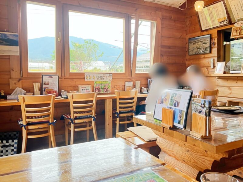 「手打ちそば&カフェ あぐりす」の店内は、木で囲まれた素敵なスペース。