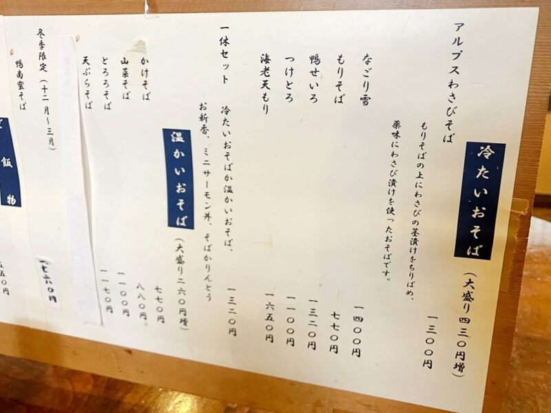 安曇野のわさび、サーモンを味わえるおそば屋さんです。穂高駅近くなので、電車で訪れても大丈夫。