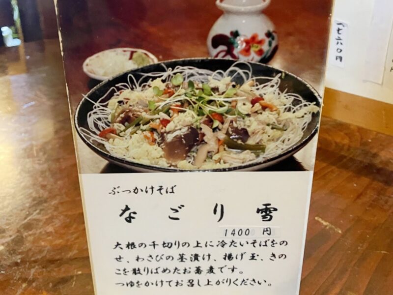 「そば処 一休庵」でよく話題に上がっているのが、ぶっかけそばのなごり雪。