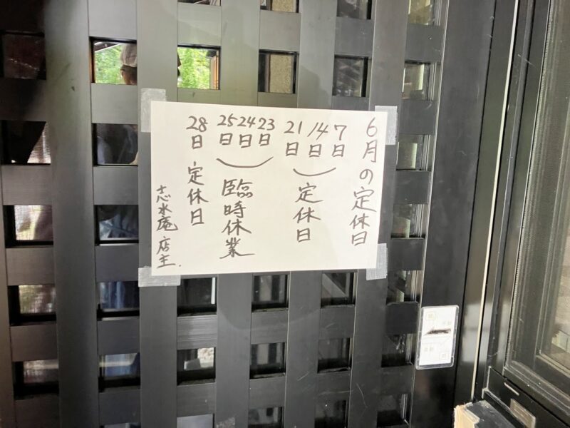 「そば処 志水庵」があるのは、カフェ七ヶ月の向い側。木立に囲まれた静かなエリアです。