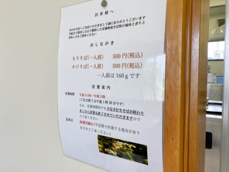 営業時間:11:00〜14:00 ※そばが終わり次第終了