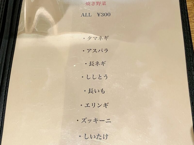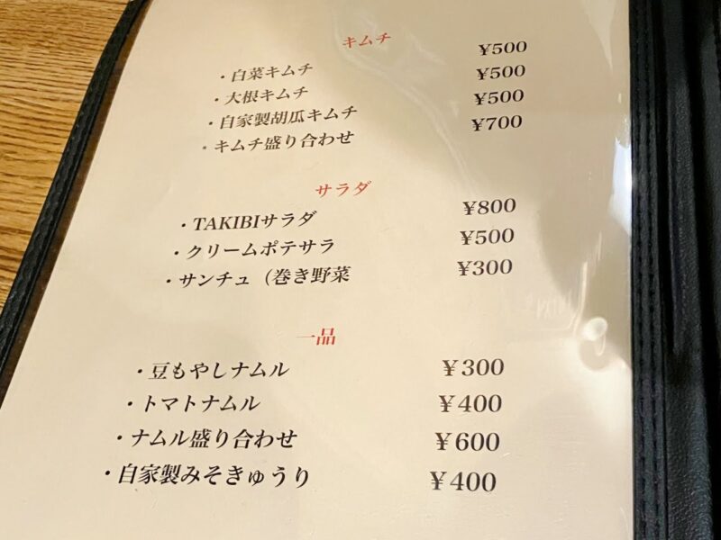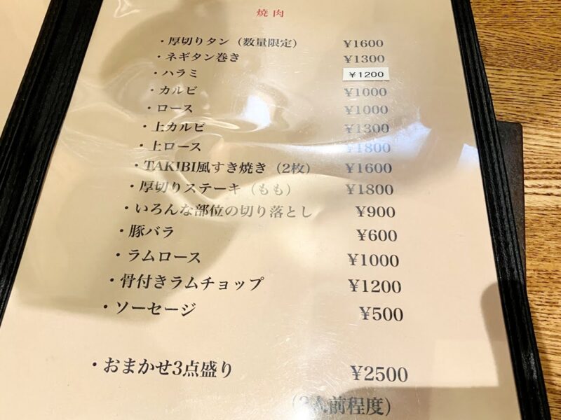 「炭火焼肉 TAKIBI 」の焼肉メニューです。