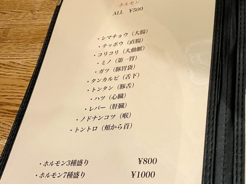 ホルモンはALL500円!