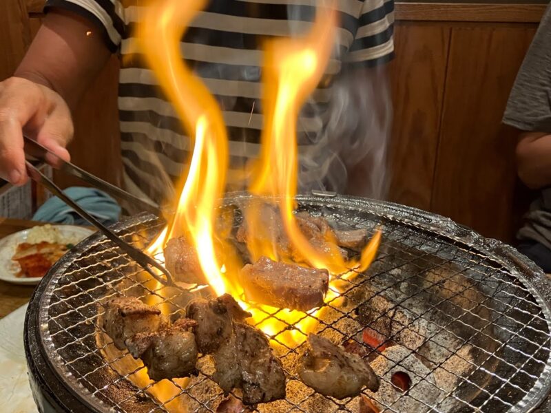 油が落ちるたびに火が上がるのも炭火ならではですね。