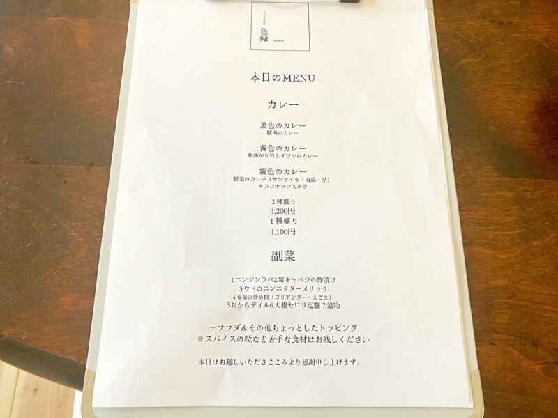 「スパイス食堂 色縁」のメニューはカレーがメイン。