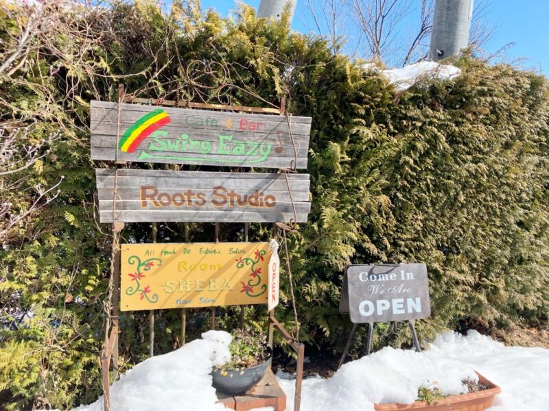 「Swing Eazy 森の中のCafe & Bar」は、森の中にあるので、通りには看板が出ています。