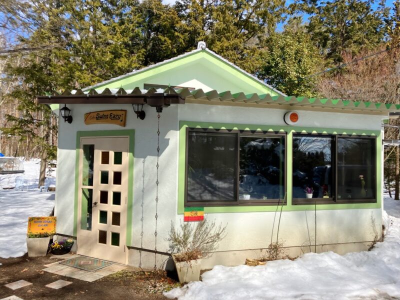 「Swing Eazy 森の中のCafe & Bar」は、穂高の森の中にある隠れ家的なカフェです。夜はライブも楽しめます。