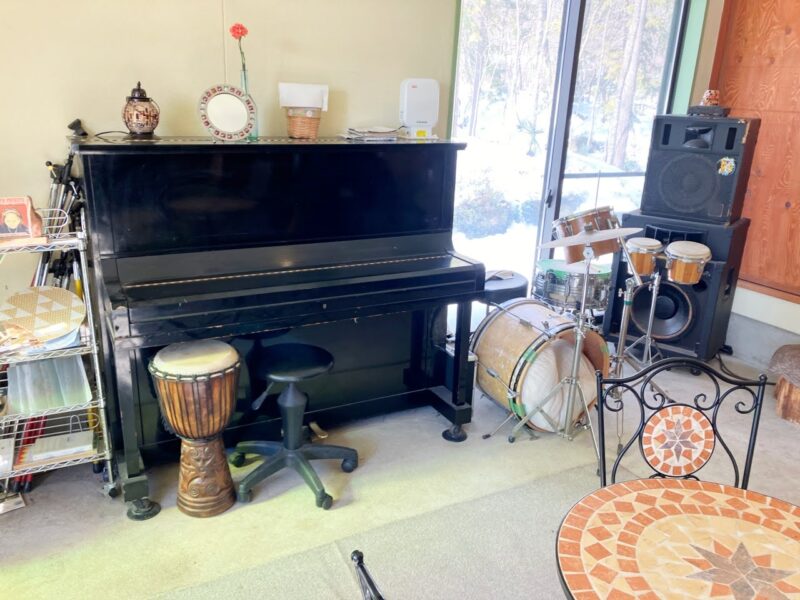 ドアを開けると楽器やレコードが並んでいるお部屋が登場。
