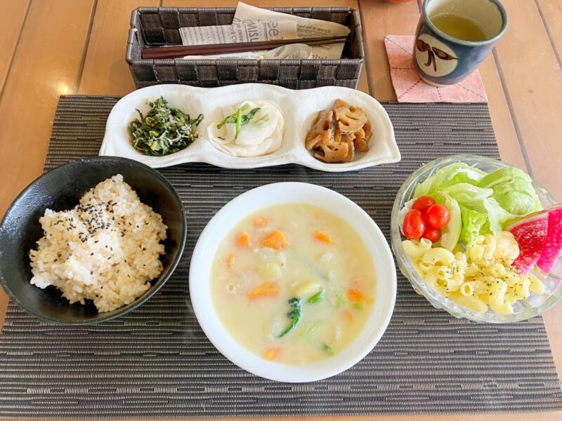 ランチは、玄米とお惣菜、サラダがつく定食タイプをいただけます。