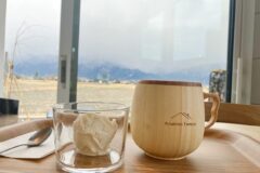 穂高柏原にオープンしたばかりの「田んぼのとなり」。ドアを開けると、県内産の小麦を使ったパンがカウンターに並び、買い物心をくすぐります。