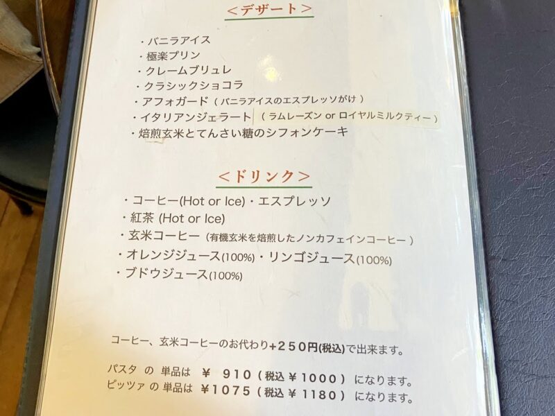 「安曇野イタリアン食堂 タヴェルナ・ラピュタ」のメニュー