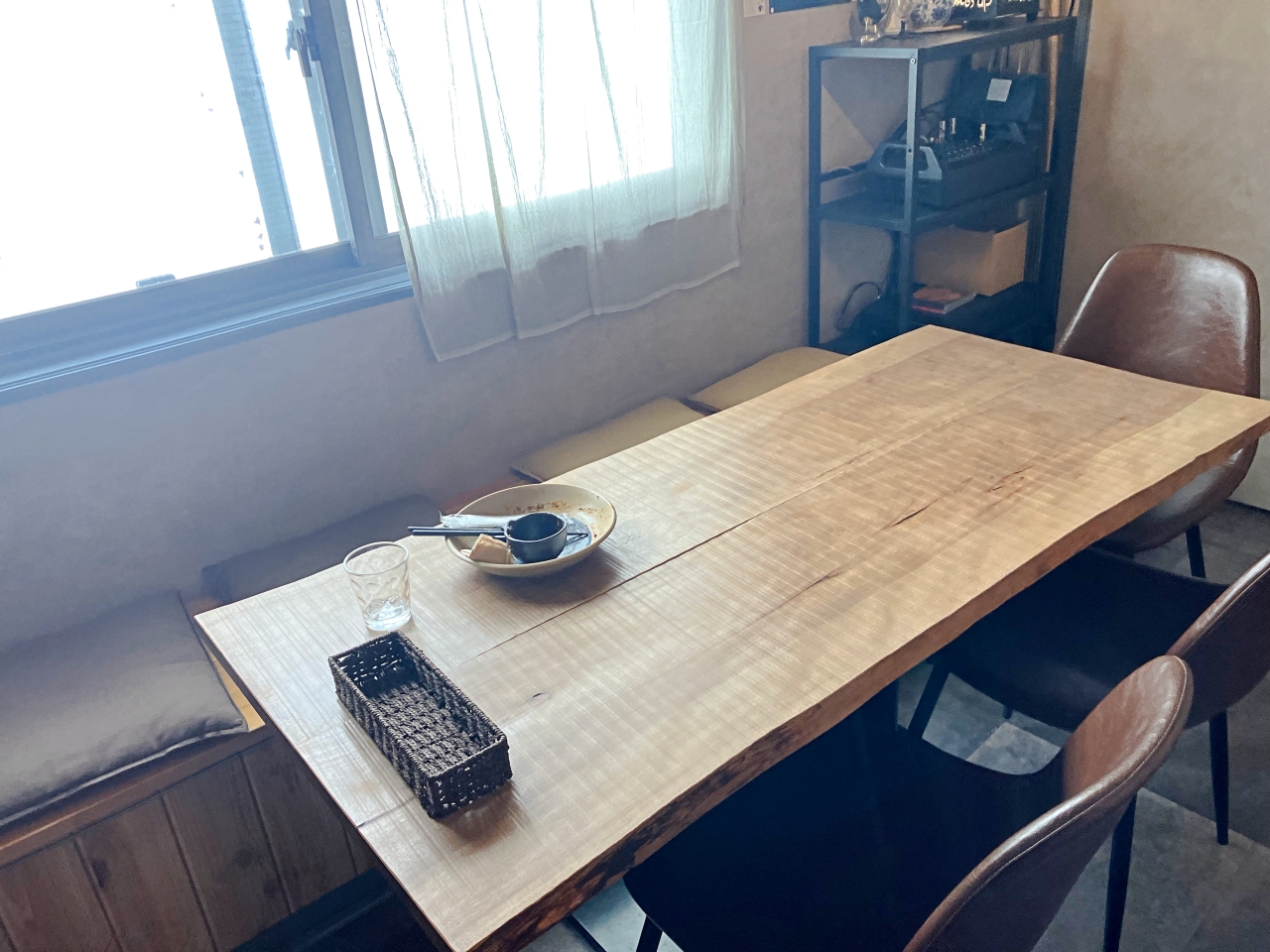 奥にはグループでも楽しめるテーブル席が2テーブルあります。ちなみに、壁際にカウンター2席も用意。