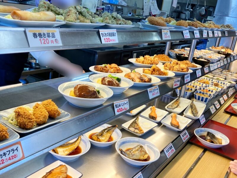 入り口すぐにトレーがあるので、料理カウンターで自分の好きな料理を取りましょう。