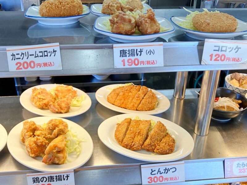 唐揚げにとんかつ、コロッケ、カニクリームコロッケなど。