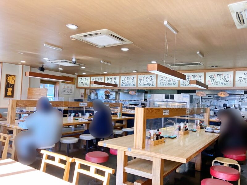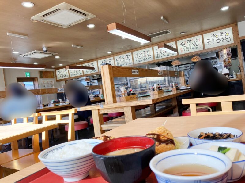 お昼時は駐車場いっぱいになることもある、定食の人気店。前を通るたびに、コシヒカリののれんも気になっていました。