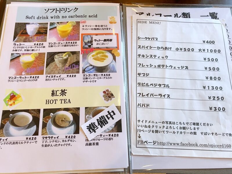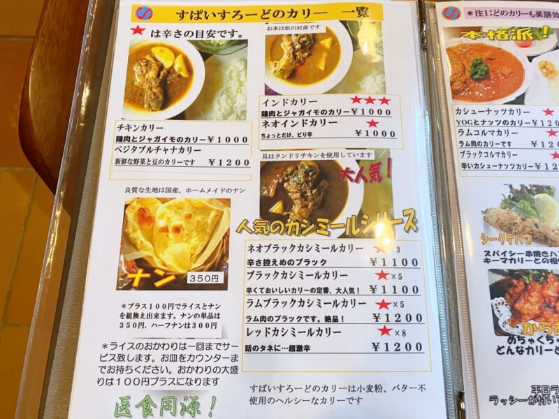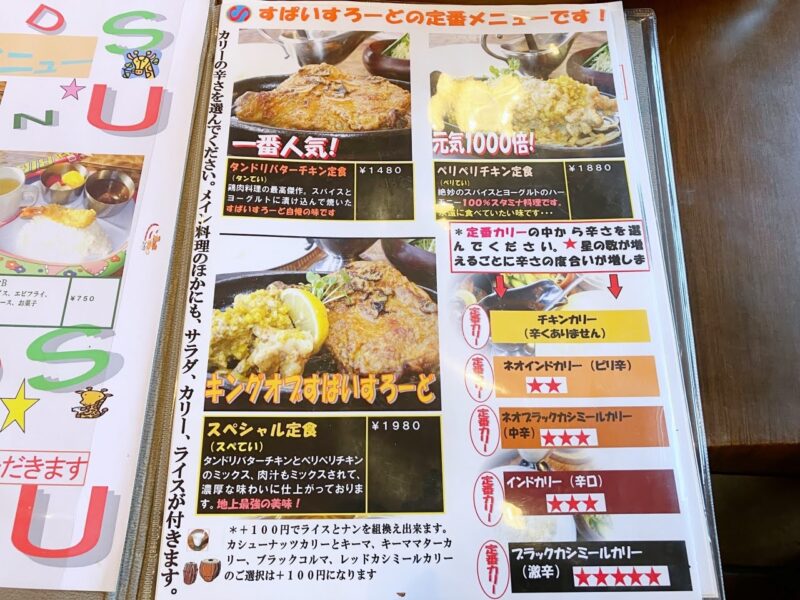 「ワールドカリーの館 すぱいすろーど」のメニュー