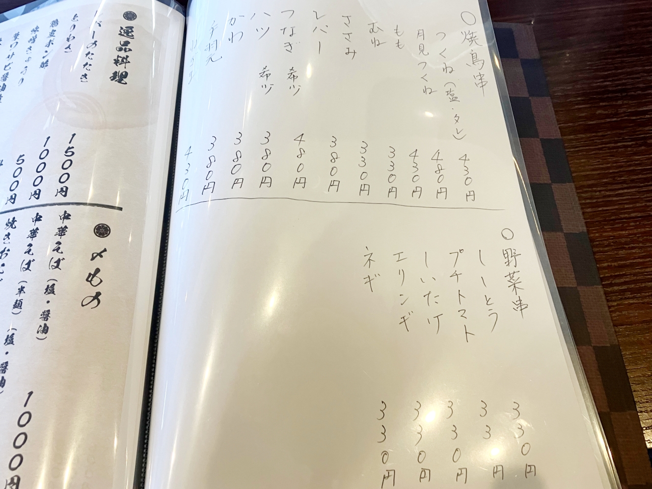 地内に焼き鳥はその日の仕入れによって変わるのかな。手書きで書かれていました。つなぎやハツもありますね。安曇野には焼鳥屋さんって多くないので、貴重なお店かなと。