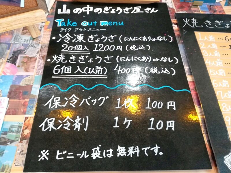 「山の中のぎょうざ屋さん」のメニュー