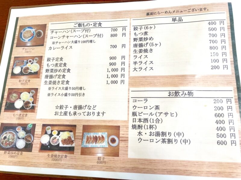 チャーハンや餃子、もつ煮定食も要チェックです。